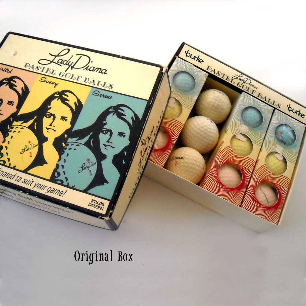 I don’t normally discuss golf here; other than considering it a “game” and not a true “sport”, or puttering around at mini-golf with the kids, I have no thoughts on it whatsoever. However, I can’t let this vintage box of Lady Diana Pastel golf balls go without a comment.